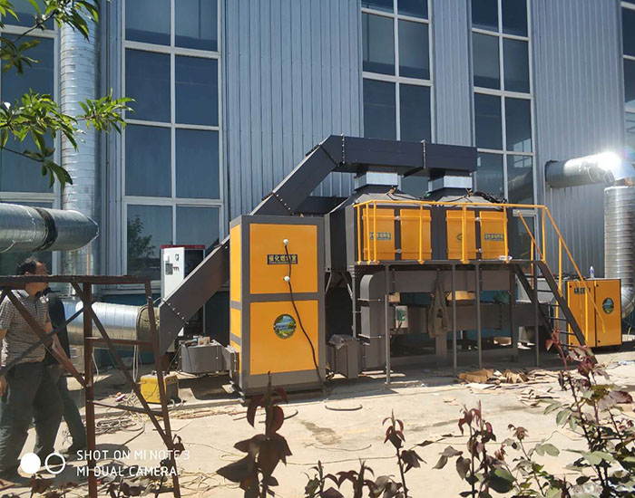 作業原理及流程:催化凈化是典型的氣固相催化反應,其實質是活性氧參加的深度氧化效果。在催化凈化過程中,催化劑的效果是降低活化能,一起催化劑外表具有吸附效果,使反應物分子富集于外表提高了反應速率,加快了反應的進行。借助催化劑可使有機廢氣在較低的起燃溫度條件下,發生無焰燃燒,并氧化分化為CO2和H2O,一起放出大量熱能,從而達到廢氣中的有害物的辦法。