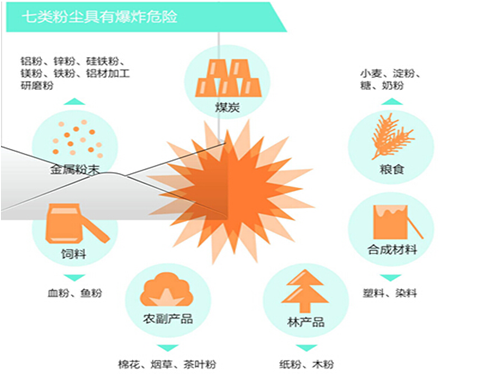 二,在爆炸濃度范圍內的粉塵作業裝置、崗位及其環境,須有必要的安全技術措施。對在爆炸_范圍內的粉塵作業裝置和崗位,要嚴格控制點火源,要落實一系列控制點火源的安全措施。如裝置內有產生靜電火花可能,要嚴格控制湍流的速度;粉塵排放口,要有防止外來火種引燃、引爆的措施等。